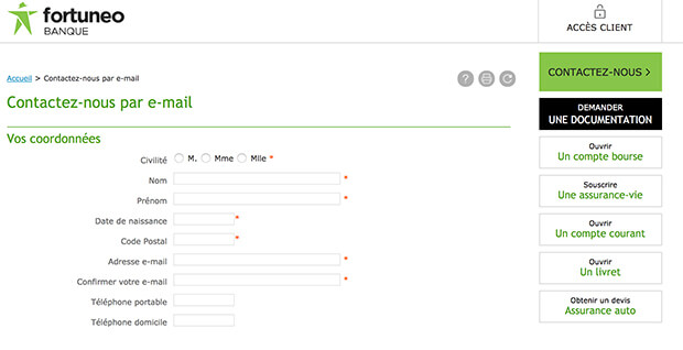 Vous pourrez adresser votre demande via le lien suivant : formulaire de contact Fortuneo .